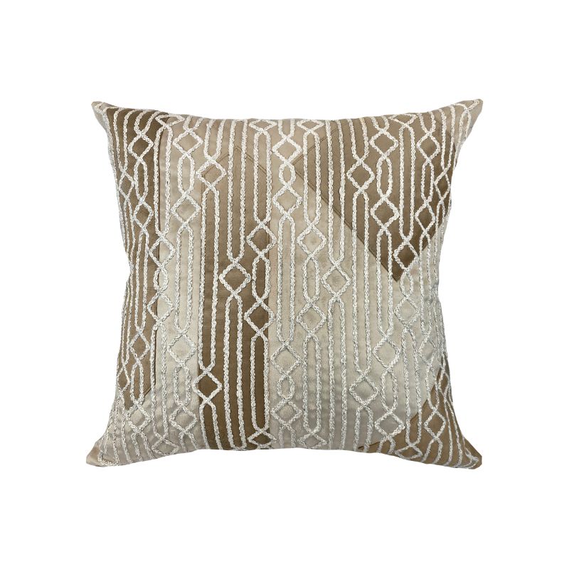 Almofada Veludo Bege Bordado Boucle 3 52x52cm