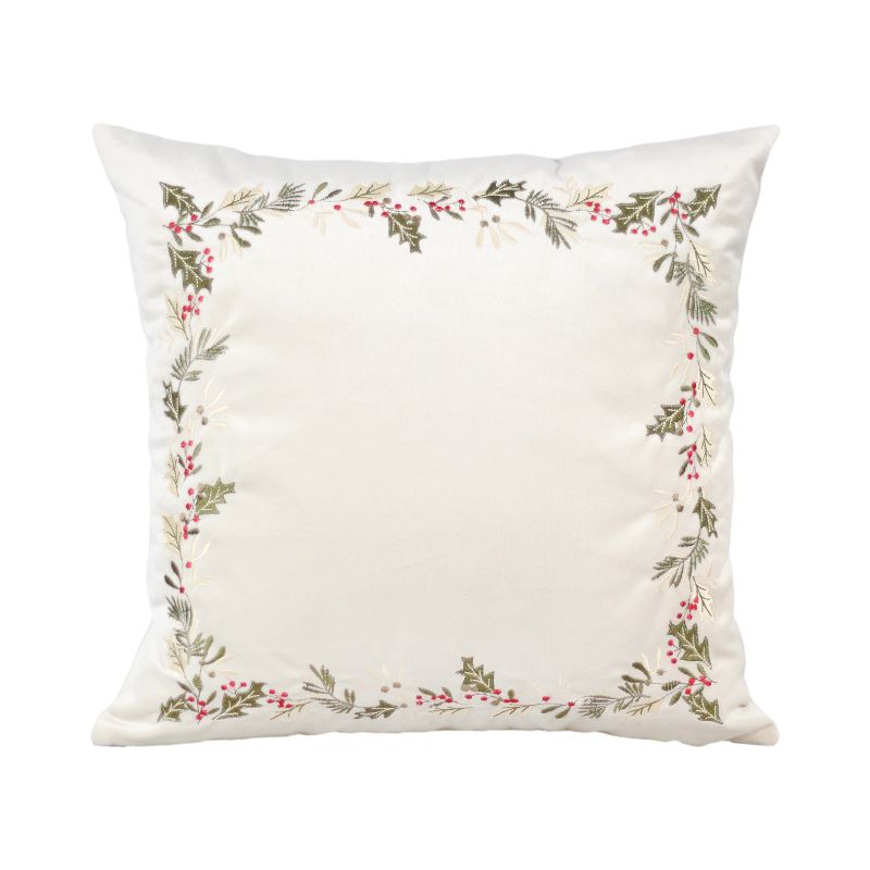 Almofada Veludo Bege Bordado Natal 45x45cm