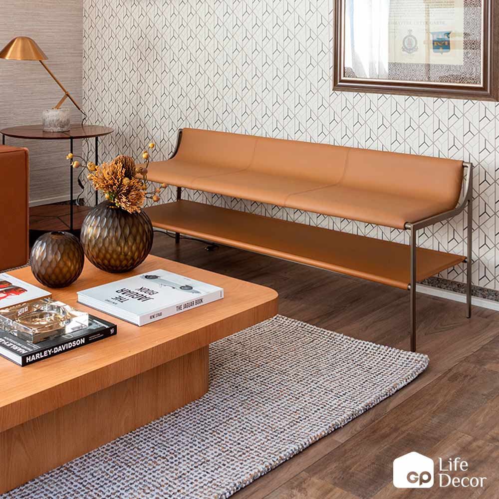 Tags: banco couro, banco couro e metal, banco living, banco sala de estar, móveis em couro